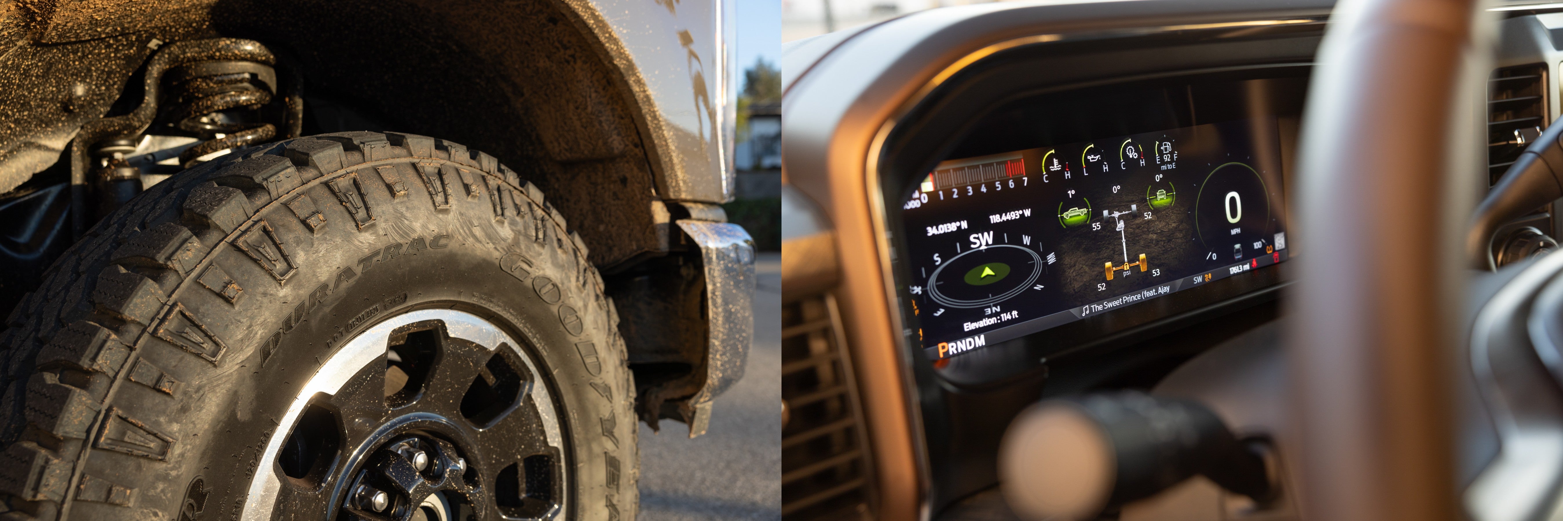 Med instrumentbrættet indstillet til en dedikeret Off-Road-tilstandsskærm flankerer vippe- og hældningsvisere dækktrykket, som jeg tilbragte størstedelen af morgenen med at overvåge meget nøje. Jeg sænkede kun Goodyearedækkene til 30 psi af sikkerhedsmæssige årsager og for en smule mere overholdelse, hvilket hjalp affjedringen med at absorbere de værste rutser og stød, men jeg kørte stadig langsomt og stabilt i stedet for at fury op ad bakken så hurtigt som muligt. For når alt kommer til alt, ville ikke mange andre vogne Have kunnet hjælpe mig, hvis noget gik galt!