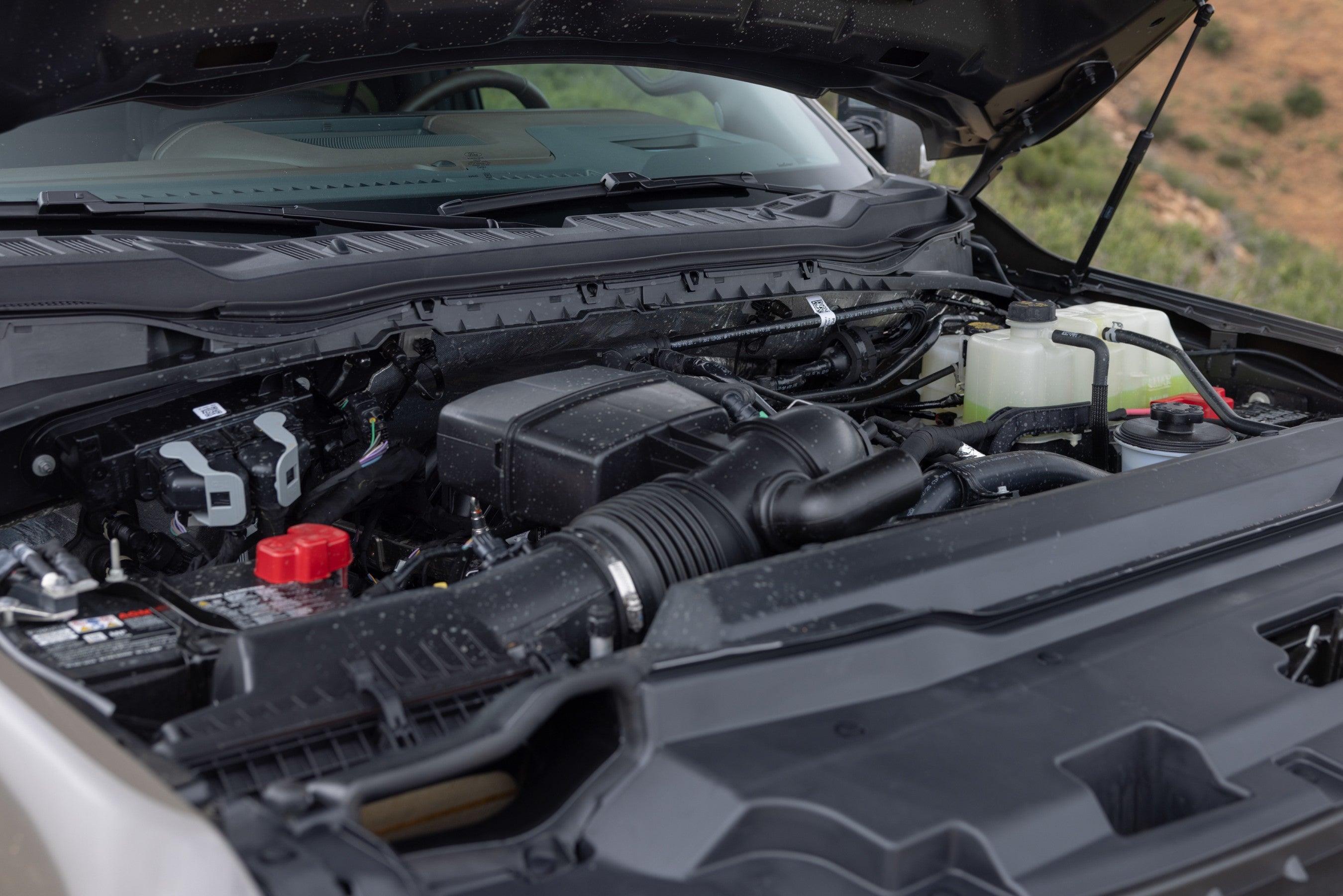 F-350’ens frontklap svajer også mere generøst fremad end mange 1500-klasses amerikanske pickups, hvilket yderligere giver mere tillid bag rattet – både på vej og i terrænet. Ved seks fod én tomme kan jeg typisk flytte førersædet i en fuld størrelse lastbil lidt længere frem og op, når jeg giver mig i kast med firehjulstræk, for bedre at kunne holde øje med kommende forhindringer. Men da jeg ankom til min sædvanlige testkurs nord for LA, i F-350, havde jeg aldrig behov for det.