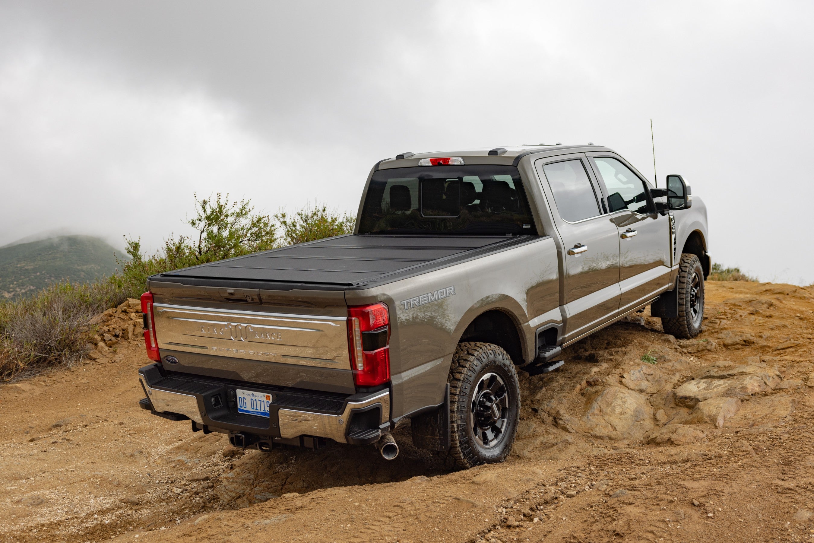 Valget af den rigtige linje i F-350 betød, at bagaksellens bane skulle holdes i tankerne, men generelt, hvis jeg pegede rattet mod en forhindring og lod et forhjul kravle op og over, fulgte bagenden i sporet. Denne sti manglede dog virkelig skarpe punkter. I stedet tilbragte jeg det meste af opstigningen med at lede efter stadigt mere vanskelige steder at posere med et eller to hjul i luften. Til min store skuffelse gad Tremor’ens affjedringsløft og de store dæk mig aldrig få mulighed for at springe ud (igen, via trinbrædderne) og skyde det perfekte dramatiske øjeblik.