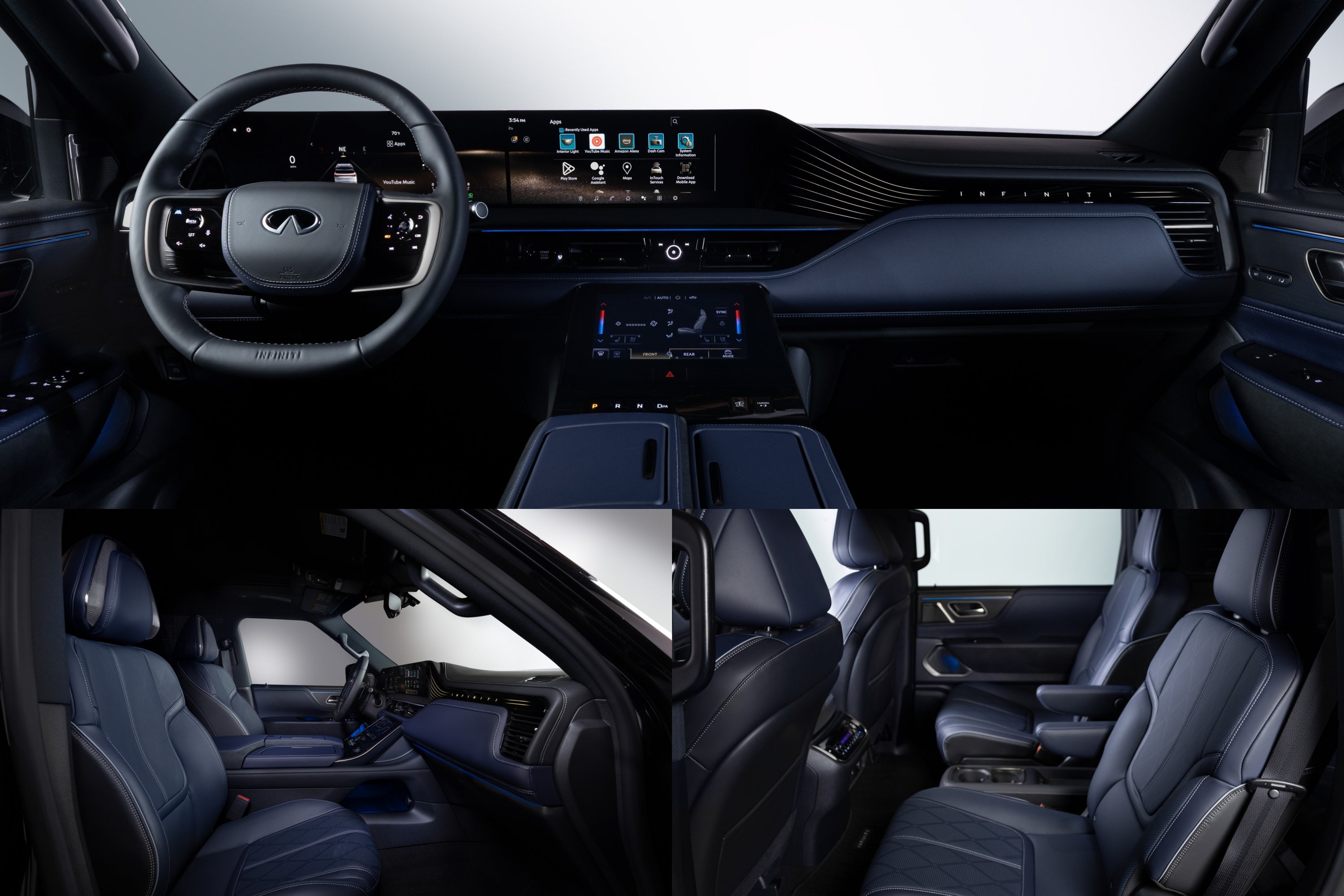 Også ret unikt er biometrisk afkøling, somautomatisk dirigerer luft mod passagerne i anden række, når den registrerer, at de bliver for varme, og køler dem ned på halvdelen af tiden i forhold til et standardklimasystem, ifølge Infiniti.